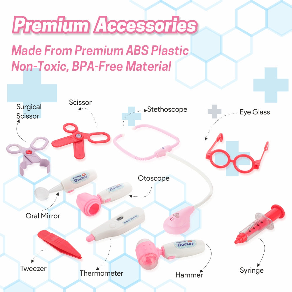 Chanak Premium Doctor Set for Kids, Doctor Set with LED Light Instruments, Pretend Play Doctor Set for Kids Above 3 Years, 10 Piece Doctor Kit for Boys & Girls, BIS Approved. (Pink)
