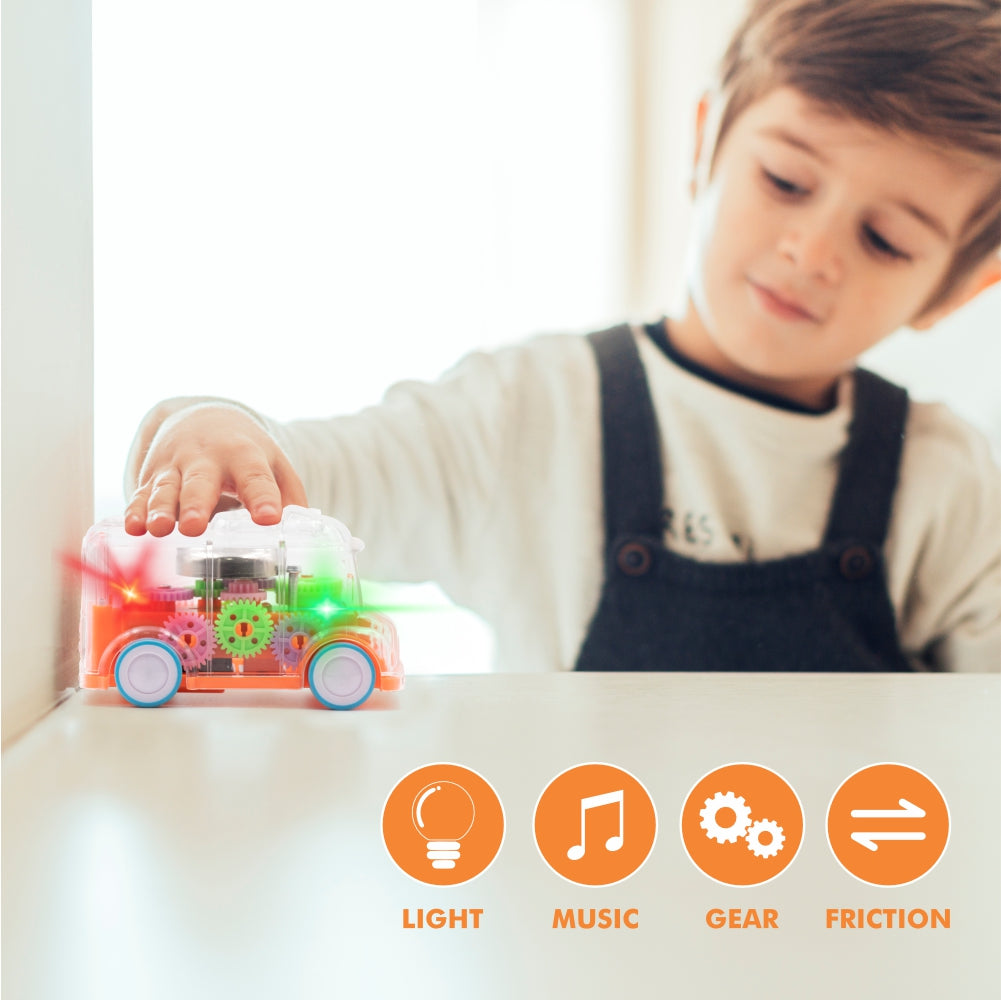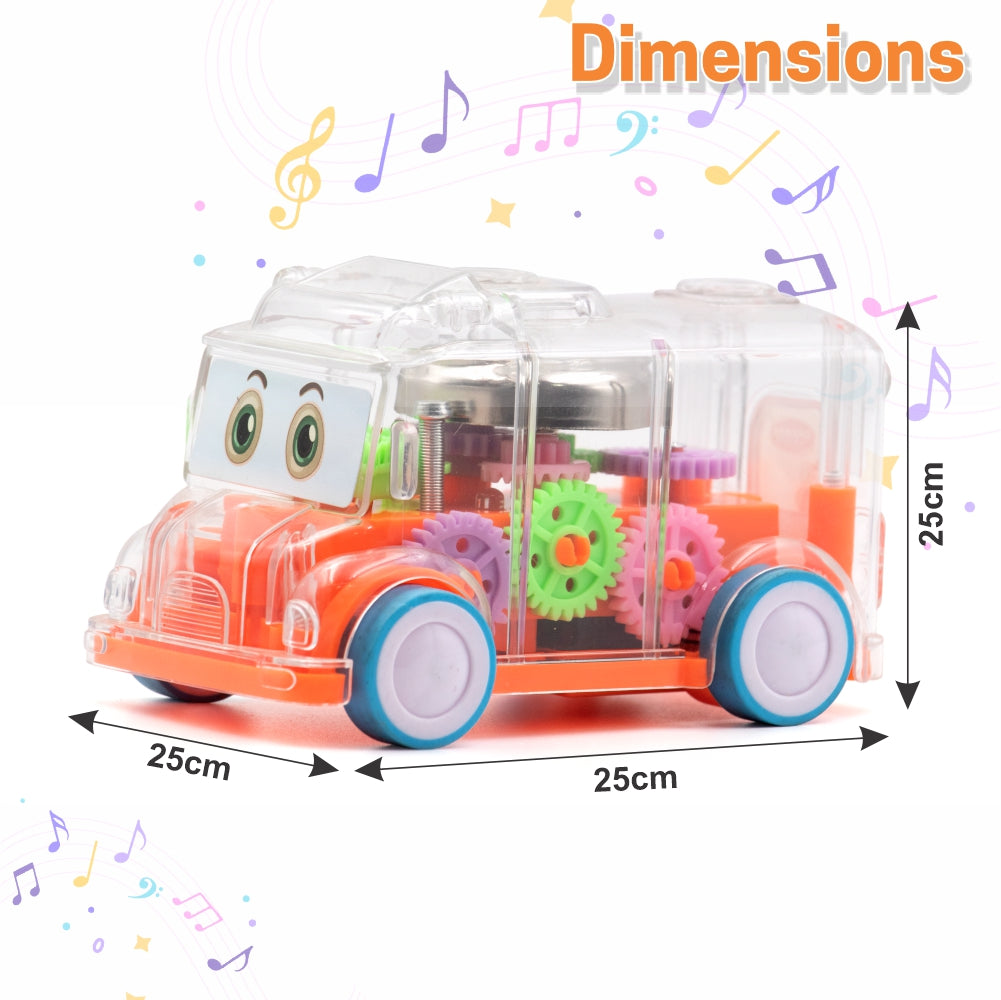 Chanak Mini Gear Bus for Kids – Transparent Gear Car Toy with Lights & Sounds (Orange)