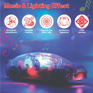 Chanak Transparent Gear Car for Kids – 3D Concept Gear Car with Lights & Music (Red)