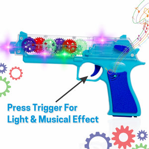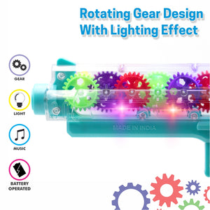 Chanak Transparent Gear Toy-Gun for Kids – Musical Gear Toy with Lights & Vibration (Blue)