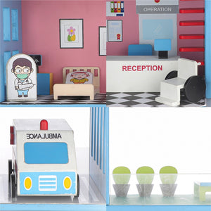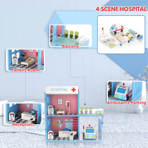 Chanak Wooden Hospital Set for Kids – 4 Room Hospital Playset with 18 Pieces