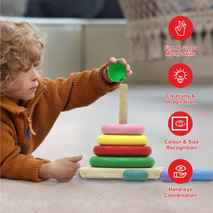 Chanak Wooden Stacking Ring Toy for Kids - Rainbow Colour