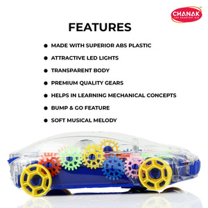 🚗 Chanak Transparent Gear Car for Kids – A fascinating gear car toy that combines fun, lights, and learning!