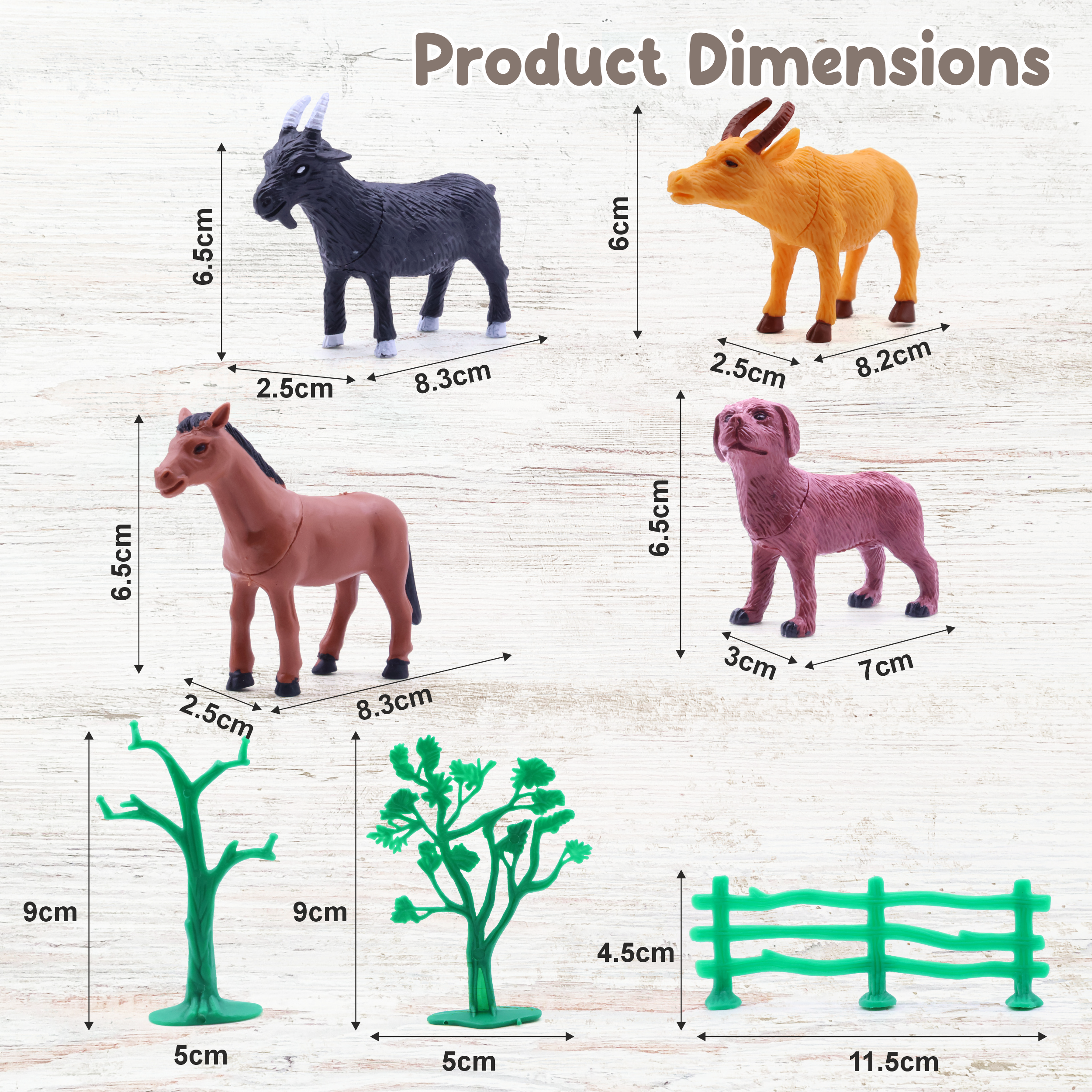 Bring the farm to your child’s playroom with the Chanak Farm Animal Toy Set, designed to spark creativity, imaginative play, and early learning. This animal toy set includes 8 realistic farm animals (cow, goat, horse, dog), along with 8 fences and 3 trees to help kids build their very own farm scene.
