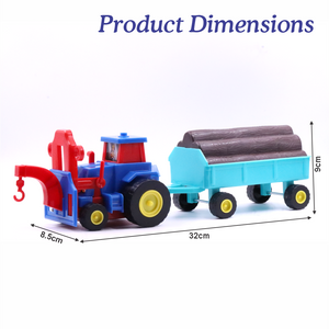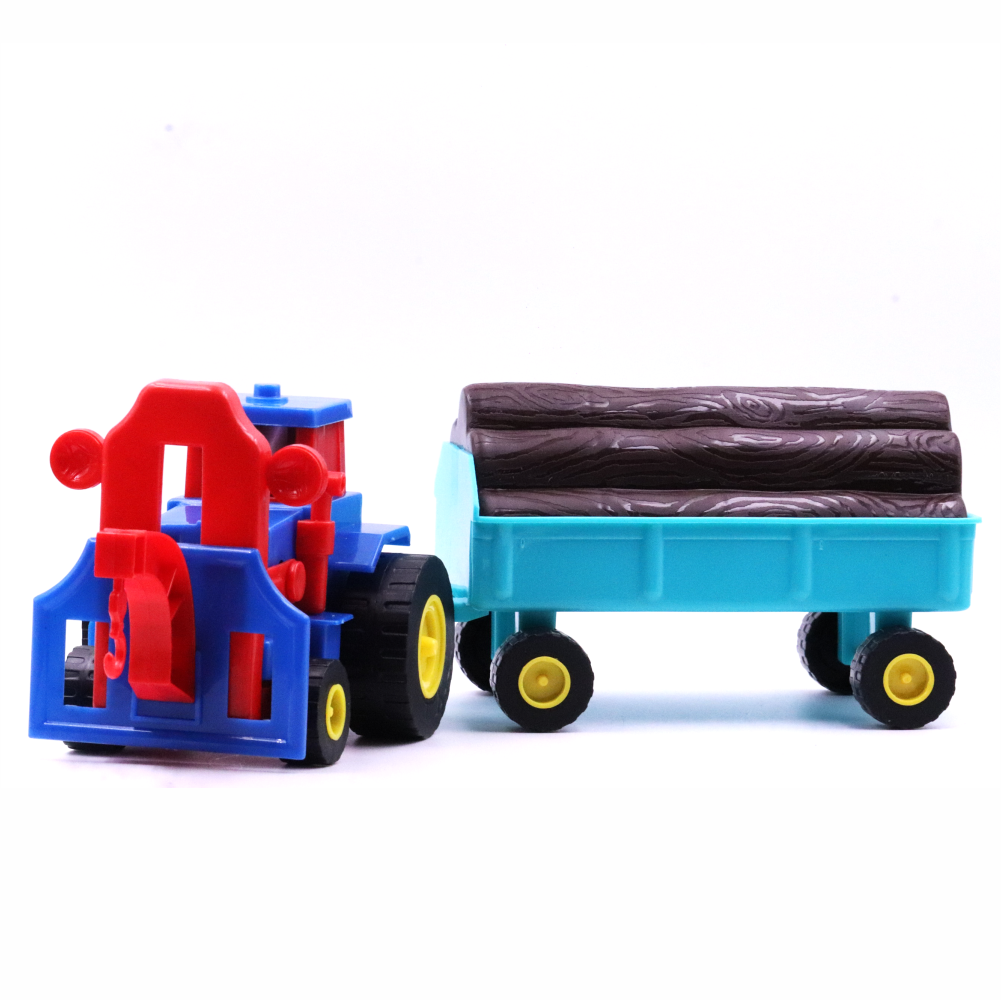 Introduce your child to fun learning and imaginative play with the Chanak Plastic Tractor Construction Toy Set. This 2-in-1 toy includes a sturdy friction-powered tractor with a wood trolley, complete with lumbers at the back for a realistic farm experience.