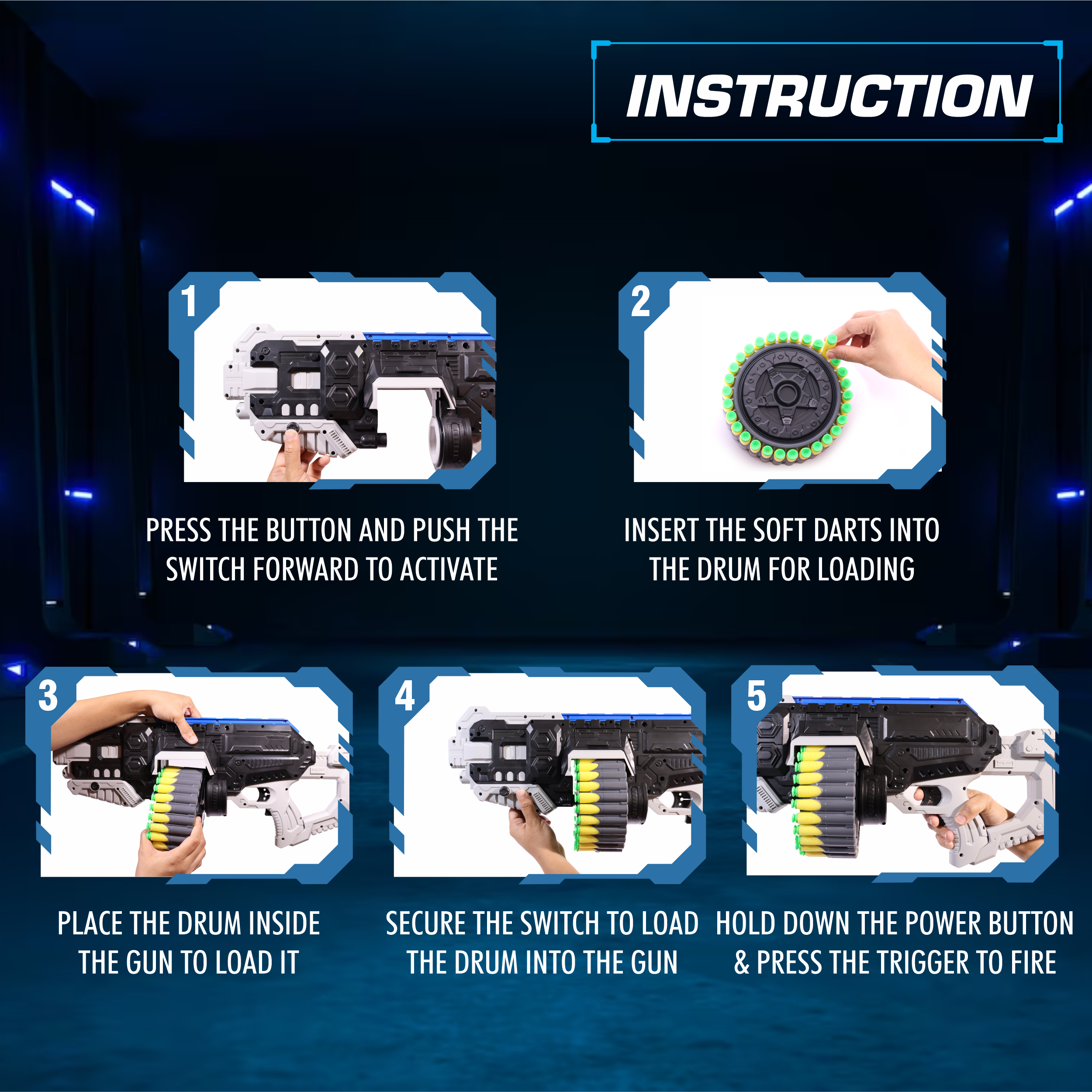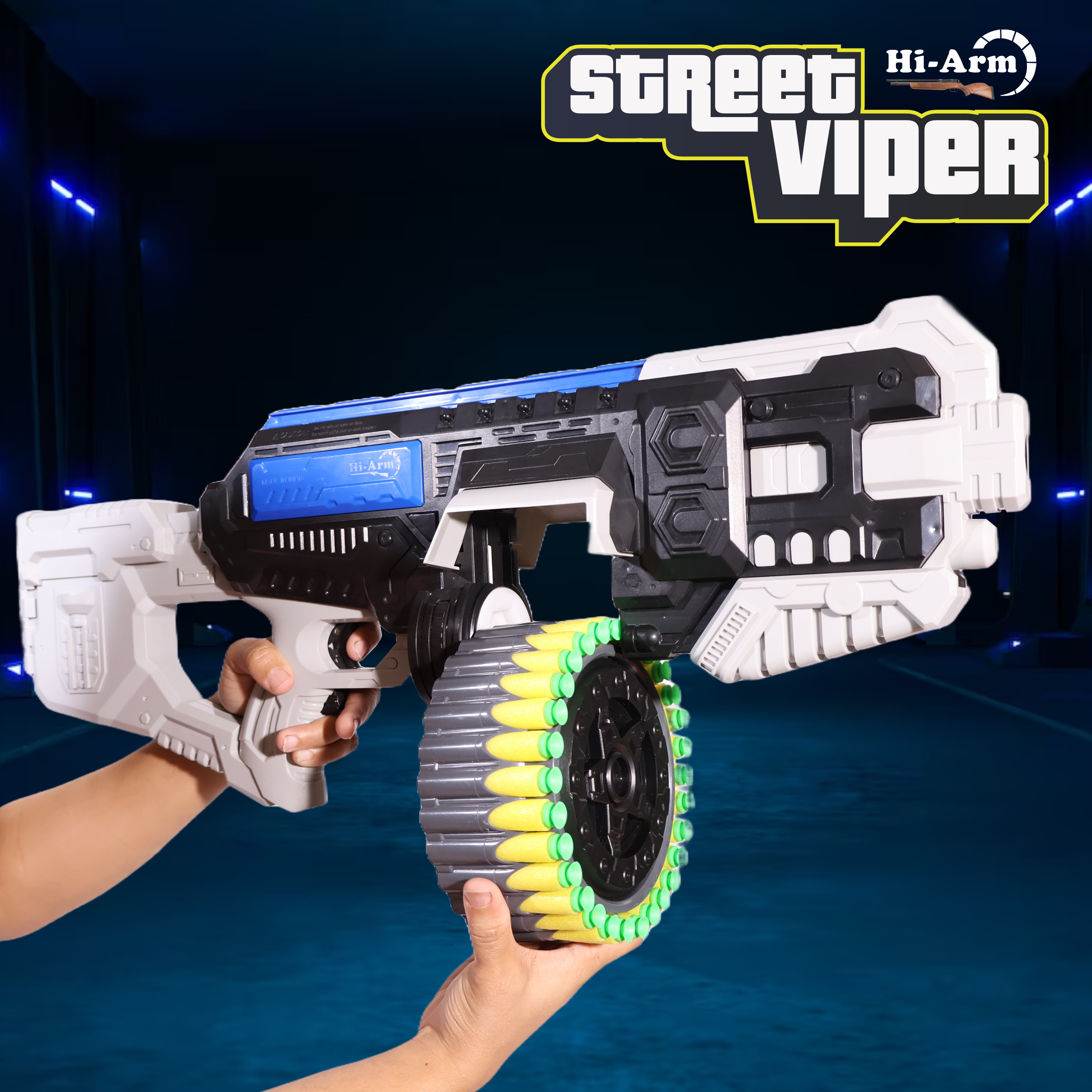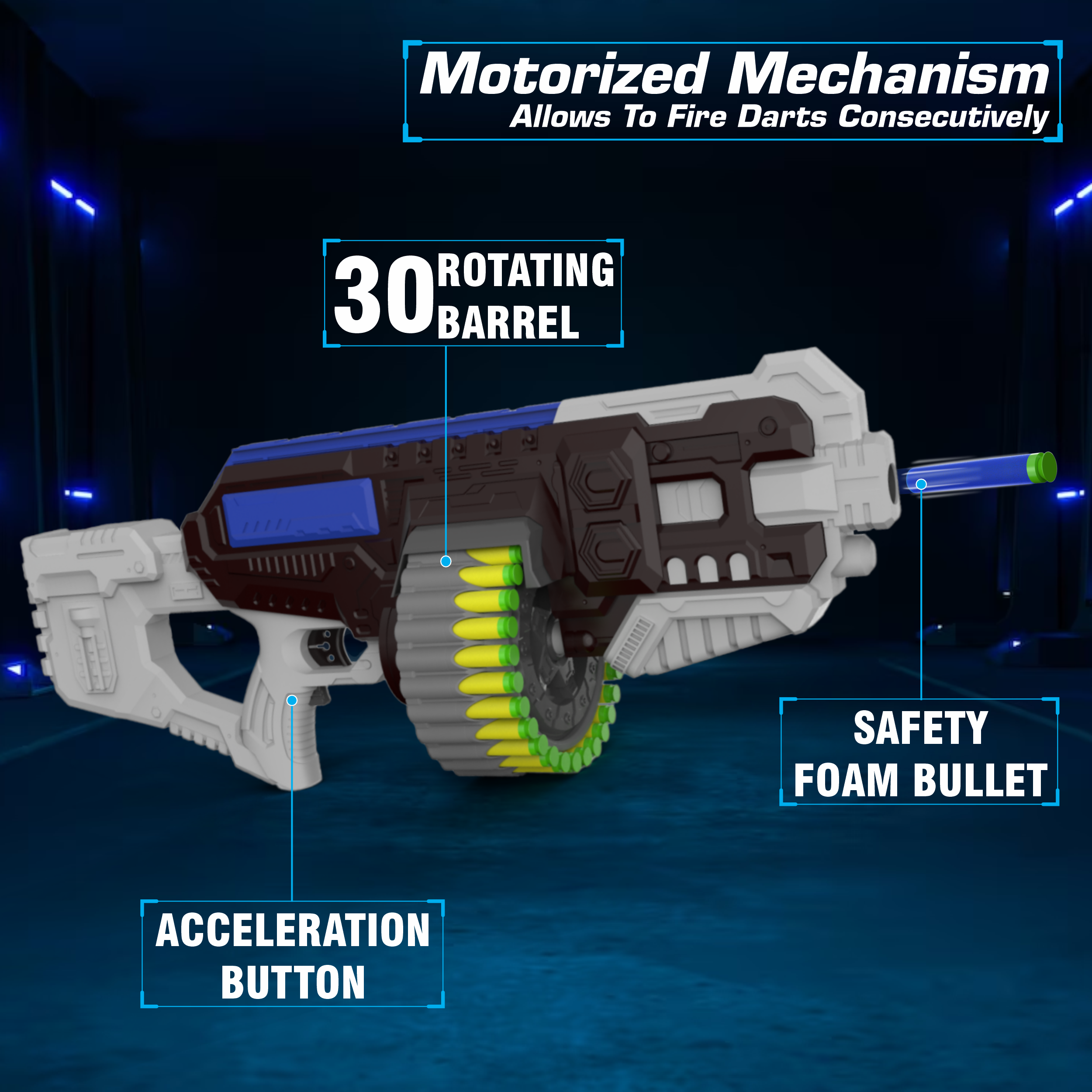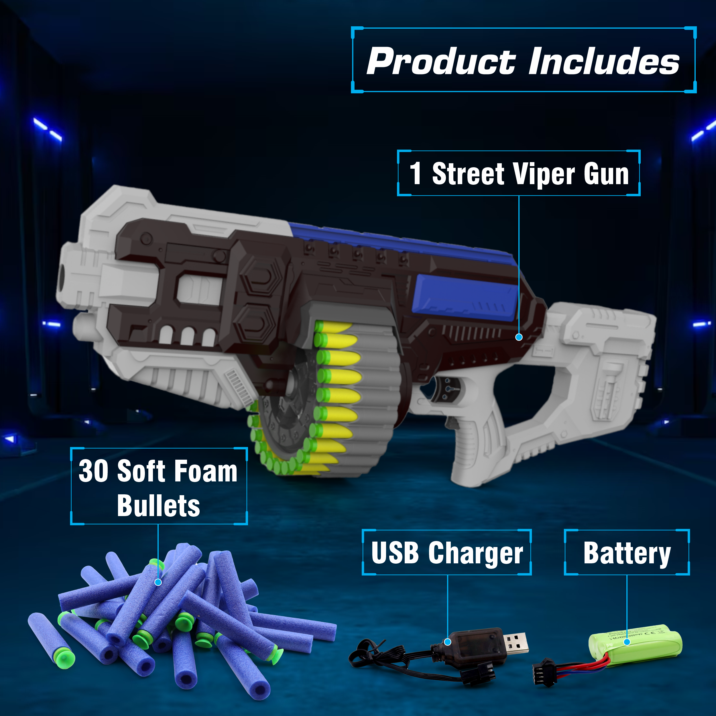 Street Viper Big Blaster Motorized Dart Gun Toy Includes 30 Soft Foam Bullet Darts, 60-Foot Firing Range, Rechargeable Electric Battery Design for Boys Girls, Above 5+ Age(Grey-Black)