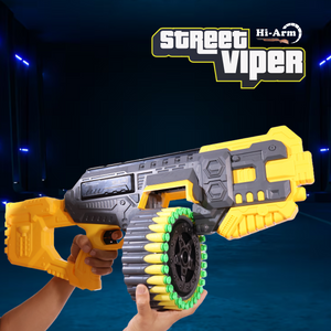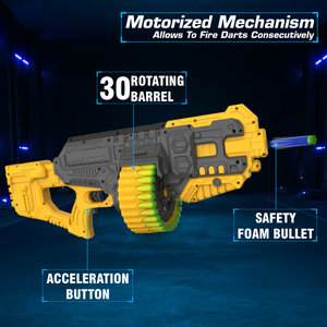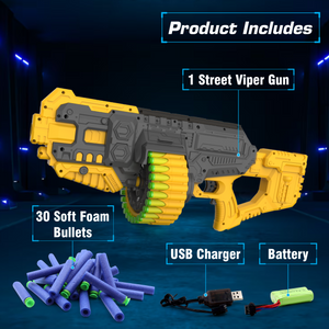 Street Viper Big Blaster Motorized Dart Gun Toy Includes 30 Soft Foam Bullet Darts, 60-Foot Firing Range, Rechargeable Electric Battery Design for Boys Girls, Above 5+ Age(Yellow-Grey)