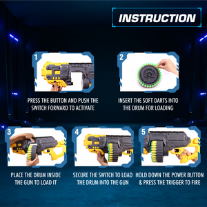 ⚡ Rechargeable Electric Design – No more replacing batteries! This gun for kids features a USB rechargeable system. Hold the accelerator button for 1–2 seconds and unleash fully automatic dart-blasting action.