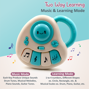 🎼 Two Engaging Play Modes – In Music Mode, babies can enjoy a loop of melodies. In Learning Mode, they discover numbers, shapes, and scales—turning this baby piano toy into both entertainment and education.