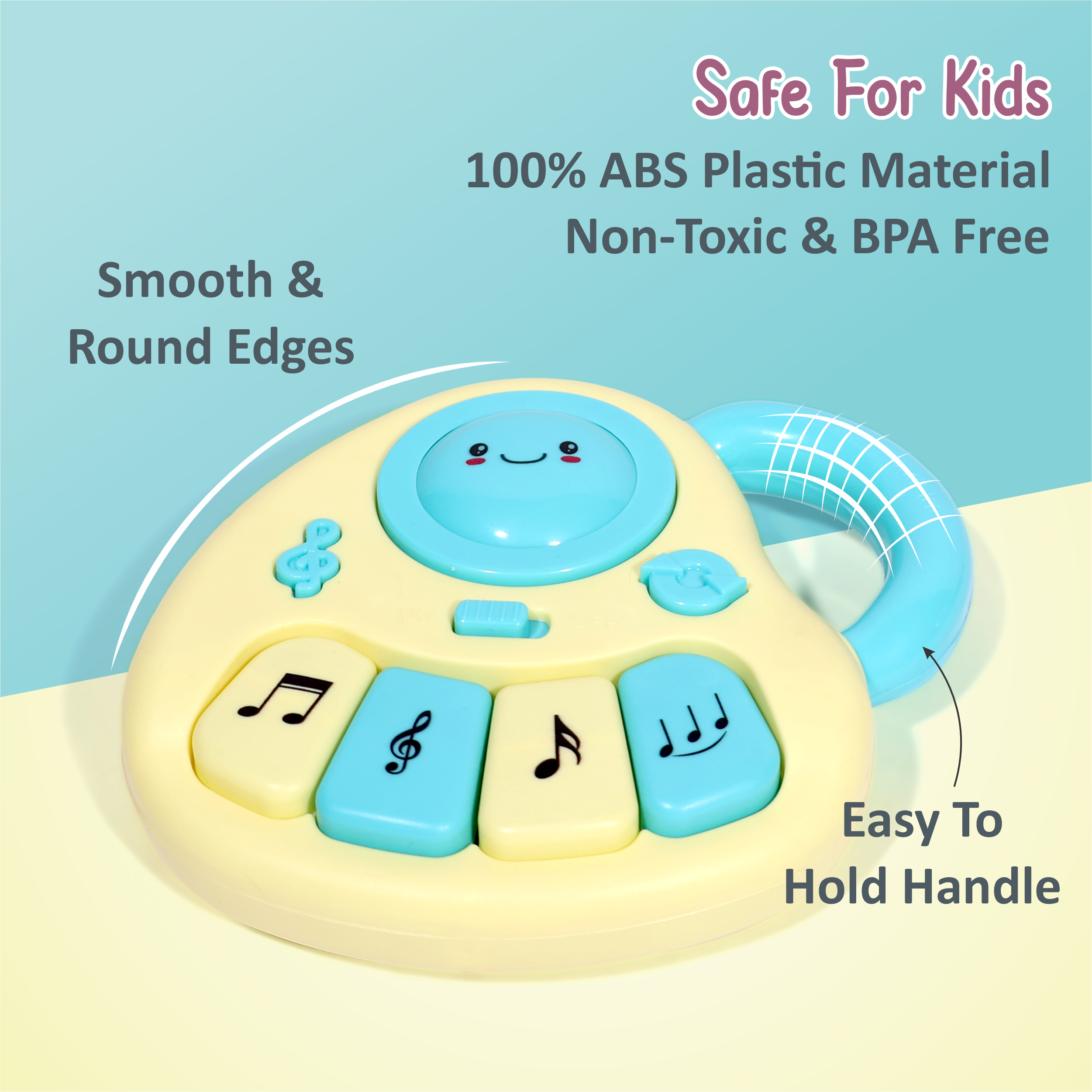 🎹 Chanak Baby Piano Musical Infant Toy (Yellow/Blue) – A delightful and interactive toy piano designed for babies aged 6–12 months. With 31 melodies, flashing lights, and early learning features, it introduces music, numbers, and shapes in a playful way.