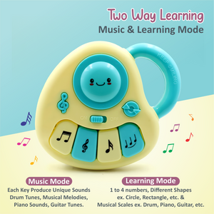 🎼 Two Play Modes – In Music Mode, babies enjoy soothing melodies on loop. In Learning Mode, they explore numbers, shapes, and musical scales, turning this baby piano toy into both entertainment and education.