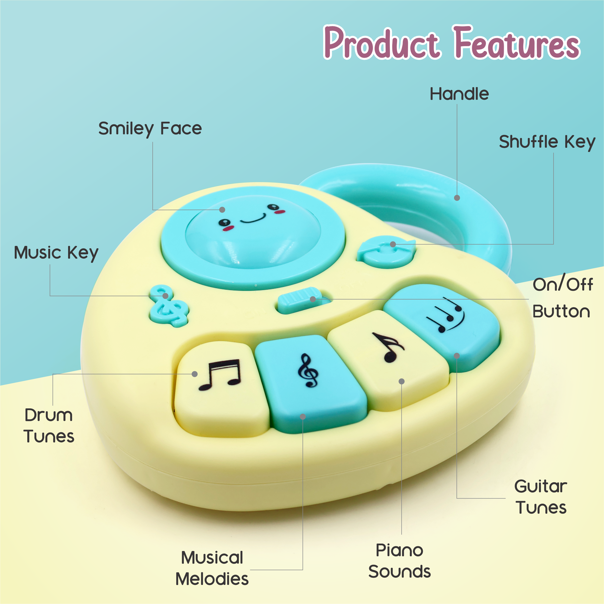 🎶 Interactive Functional Keys – Four keys produce unique sounds: drum beats, melodies, piano tunes, and guitar riffs. A shuffle button makes switching between modes easy, inspiring creativity and early musical interest.