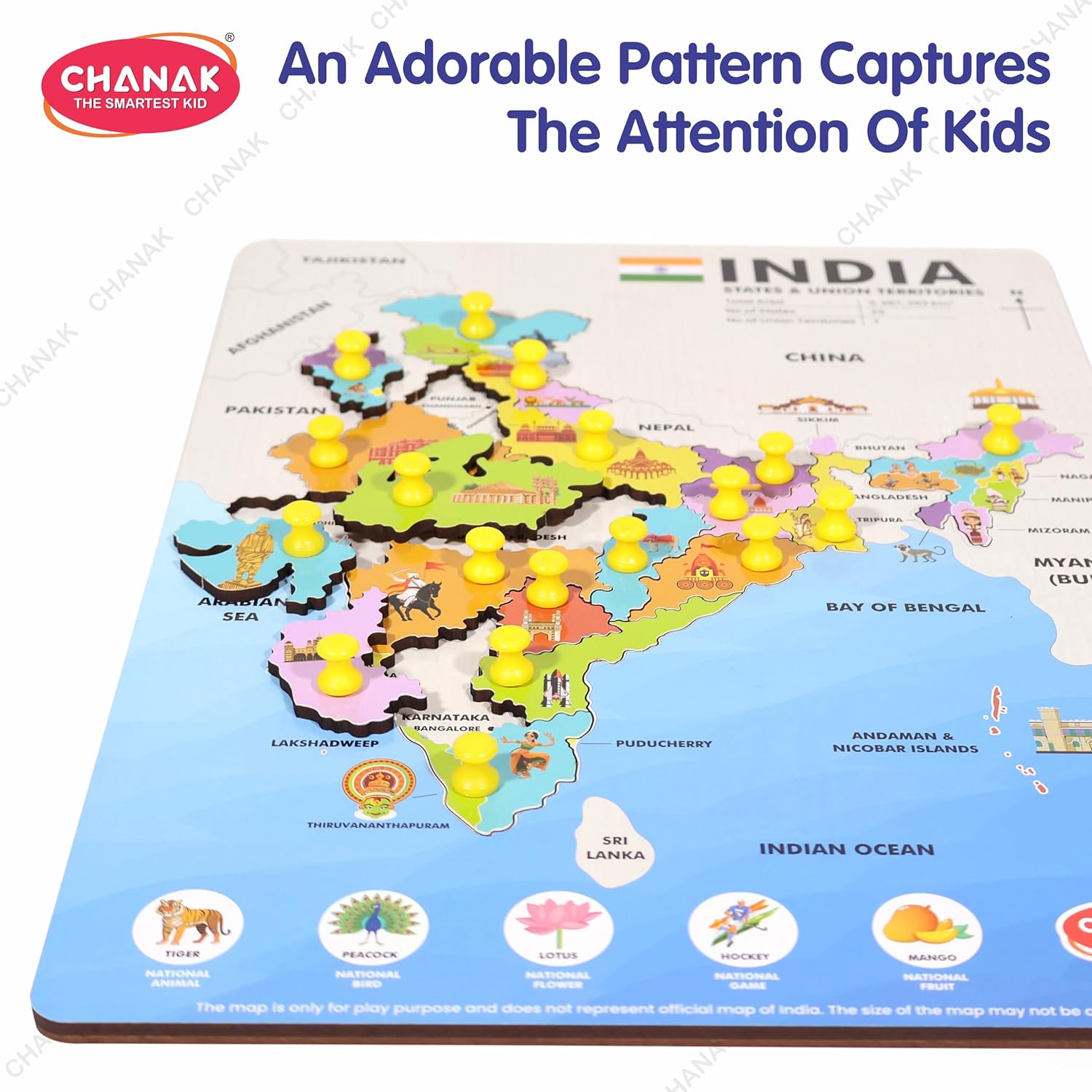 Chanak Wooden India States Puzzle – Interactive India Map with States for Kids